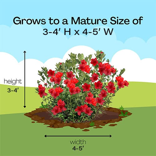 This beautiful show stopping azalea produces stunning red ruffled flowers about 2 in. to 4 in. in size each spring. Butterflies are drawn to the flower clusters and the lush green foliage shines in the garden through winter. Each flower has about 10-long stamens, adding to the delicate beauty of the red ruffled blooms. For a showstopper, year-round hedge, plant several of the shrubs along a garden border, sidewalk, driveway or before low structures!