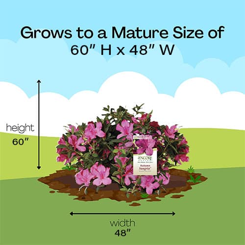With one of the largest blooms in the Encore Azalea collection, the Autumn Sangria has an especially dense growth habit and a gorgeous dark pink and green color combination. Autumn Sangria Azaleas are well suited to be planted as a specimen, mass, accent or foundation planting. Plant your encore azalea in slightly acidic well-drained garden soil and fertilize in spring will slow-release fertilizer for best foliage and bloom production. Once established Encore azaleas are easily maintained and will require limited pruning to keep a uniform look.