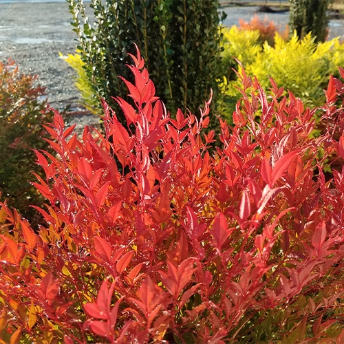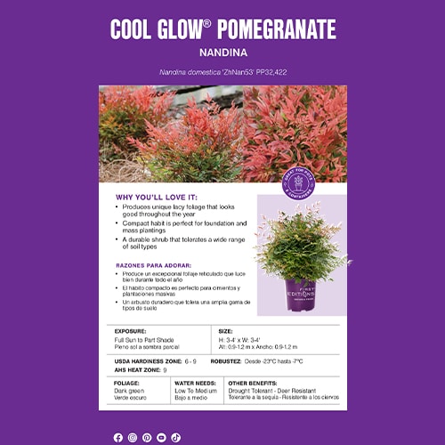Selected for spectacular red winter color and compact habit. Cool Glow Pomegranate has lacy dark green foliage that is incredibly attractive throughout the year. Grows well in a range of soil types, including dry conditions. Moderately fast growing, forming dense upright mounds that are ideal for foundation and mass plantings.
