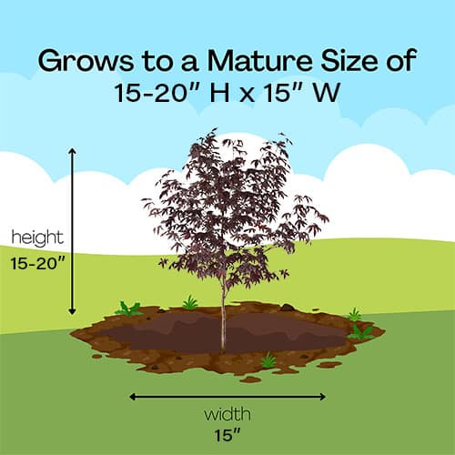 A shrub-like deciduous tree with slender airy branches. Attractive burgundy red foliage emerges during spring then turns to scarlet red in the fall. Bloodgood is a very cold hardy selection because it is late to leaf out, missing late freezes. This cultivar also grows great in high heat areas and is very sun tolerant. The color and hardiness make ‘Bloodgood’ a perfect addition that brings timeless beauty to any location.