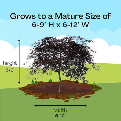 A shrub-like dwarf deciduous tree with mounding cascading branches. Lacy, vivid-green leaves emerge during spring then turn shades of red. This red weeping tree is very hardy and a vigorous grower. Tamukeyama is a very cold hardy selection because it is late to leaf out, missing late freezes. This cultivar also grows great in high heat areas and is very sun tolerant. The color and hardiness make