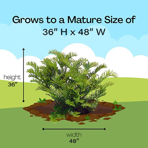 An attractive, evergreen shrub with long, dark green needles. Upright, broad growth habit with dense, finely textured foliage creates a superb accent, natural hedge or privacy screen. Tolerant of shade, heat, and drought. Deer resistant.