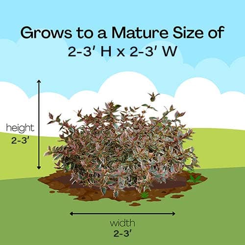 A vibrant tri-color foliage show! For gardeners on the hunt for elegant, but interesting foliage. Tres Amigos abelia seems to change each time you visit it out in the garden. In spring it starts out with green, cream, pink, and yellow-tinged foliage. Its most vibrant color is yellow, bringing sunshine into the slowly filling garden. By summer, the yellow has left completely and the pink edge on the leaf takes over. The new growth at the end of each stem is almost entirely a warm watermelon pink with sporadically placed white flowers. Each flower is fluted, perfect for inviting hummingbirds and butterflies into the garden, and has a lovely jasmine-like fragrance. Its compact habit suits it nicely for use at the front of the border, in containers, and in mixed borders with perennials and annuals.