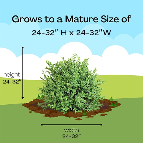 This new variety of boxwood is a cold hardy, dense globe that requires little if any pruning to form a low, dense, thick hedge. Shiny dark green leaves maintain good winter color. Use North Star boxwood as a low-growing hedge, or even to create the borders of a formal herb garden. It’s a beautiful evergreen that will provide four seasons of enjoyment in the landscape.
