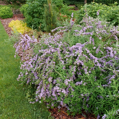 Mop Top butterfly bush has a unique fountain habit with long, weeping branches covered in clusters of pale purple flowers. Unlike other butterfly bushes, this one blooms in the spring! These fragrant blooms attract hungry pollinators and create a whimsical, flowing display in gardens just waking up from a winter slumber.