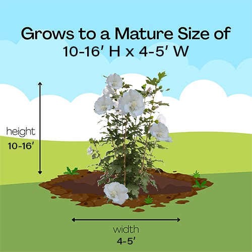 White Pillar rose of Sharon naturally grows as a narrow column, so it takes up just a fraction of the space that conventional roses of Sharon do. This particular variety sports pure white, semi-double blooms, making it an elegant choice for planting in any style landscape and along with any type of architecture. This unusual, space-saving habit unlocks so many new design possibilities: plant alongside your front entrance, as the centerpiece to a formal container, as a privacy screen, or a dramatic specimen. It’s easier than ever to enjoy this summer-blooming favorite.