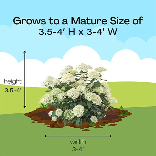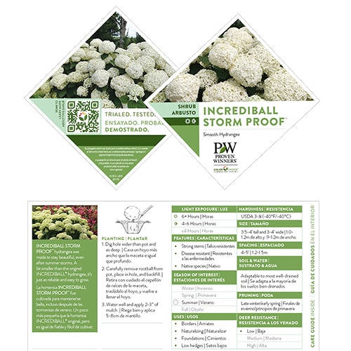 Incrediball Storm Proof smooth hydrangea is a compact and resilient shrub with dense growth and strong stems. The kind of reliability we all want in our showstopping shrubs! It features abundant small, white blooms that cover the entire plant, eliminating the need for front fillers. This low-maintenance hydrangea is perfect for gardeners who want a beautiful and weather-resistant shrub.