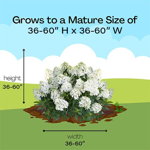 Think of Puffer Fish panicle hydrangea as a larger, more puffed-up Bobo, with fluffy white blooms that engulf the entire plant, nearly obscuring the foliage. The flowers open and mature to a pure white. As the blooms age, they turn lime green and, for a bit of surprise, a fresh sprig of white flowers emerges from the tip of the panicle. A tight, compact habit with stems strong enough to hold its blooms. This hydrangea has all the talent needed to be a first-class landscape performer!