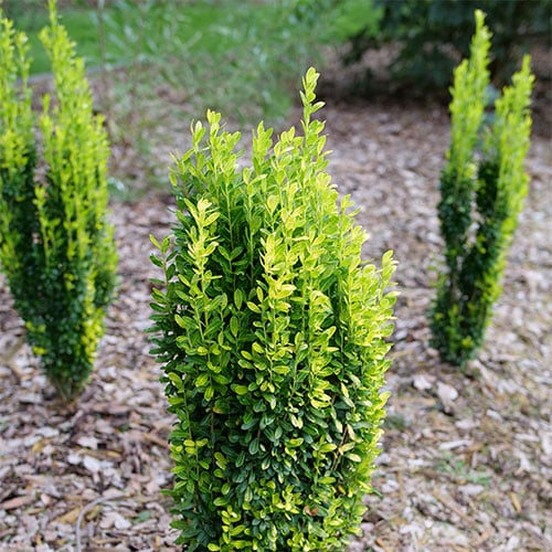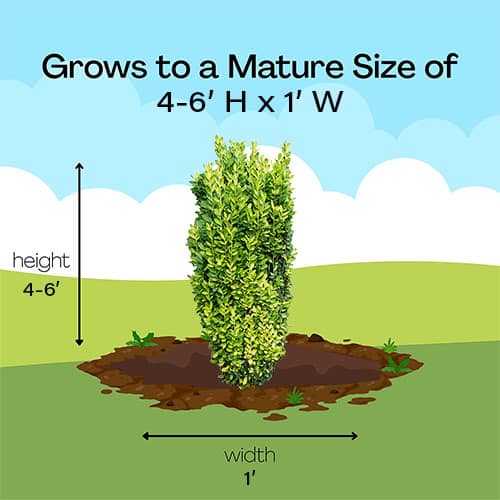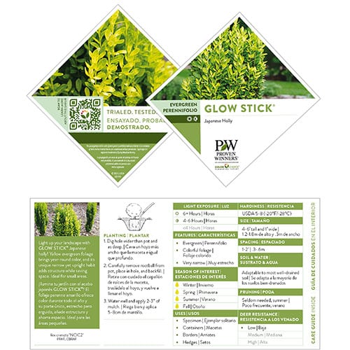 Standing tall and bright, Glow Stick Holly adds year-round interest to landscapes and containers alike. It grows in a 1′ wide column, offering endless design possibilities in even the smallest spaces. Its golden foliage weathers harsh winters and full sun without discoloration. Small but mighty, Glow Stick Holly makes a lasting impact as a grouping in the border, hedge, or even as the thriller in a container display.