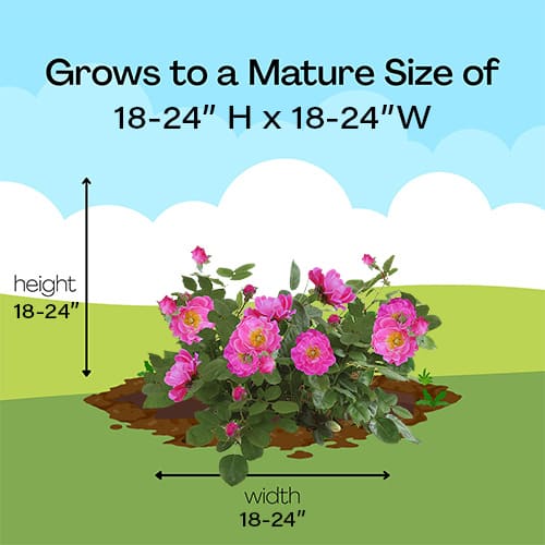 Oso Easy Double Pink rose is simply an unstoppable bloomer. With true pink blooms, it has proven to be powdery mildew and black spot resistant. If you want to enjoy months of flowers with minimal effort, this rose deserves a spot in your landscape. Perfect for containers, landscapes, and as accents!