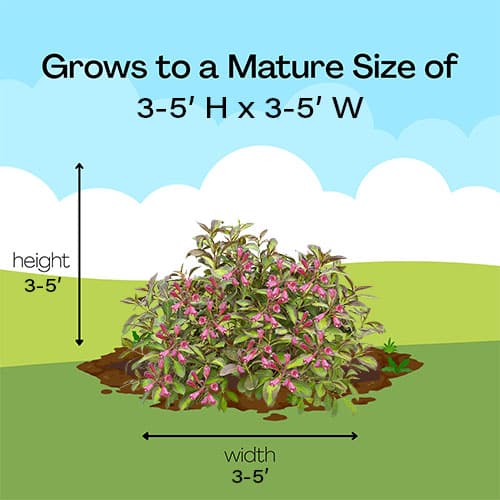 There’s nothing else quite like the New Vinho Verde Weigela! The lime green leaves showcase a bold black margin. Like all variegated plants, it will occasionally revert, but it reverts to all black, so will not overgrow the plant. A light crop of red-pink flowers appears in late spring, but the foliage – coupled with an irresistibly neat habit – is the primary reason to grow this beauty! Perfect in containers, landscapes, and as accents!