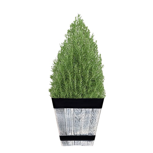 Rosemary is a perennial evergreen shrub with blue flowers. It is an aromatic and distinctive herb with a sweet, resinous flavor. The intensely fragrant foliage releases it’s fresh scent when brushed against, making Rosemary a great addition along paths and walkways or in containers on sunny patios or decks for the holidays. These decorative shrubs are also great as gifts!