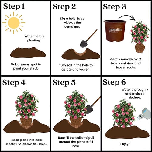This variety reaches a mature height of 6-8′ H x 4-6′ W, so be sure to leave room for it to grow.