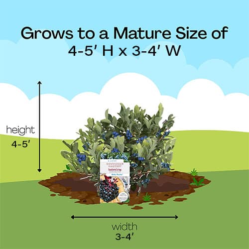 One of the best aspects of this Blueberry is its controlled, upright growth habit that matures to 4-5’ H x 3-4’ W. Therefore, it’s easy to work into any size of landscape!